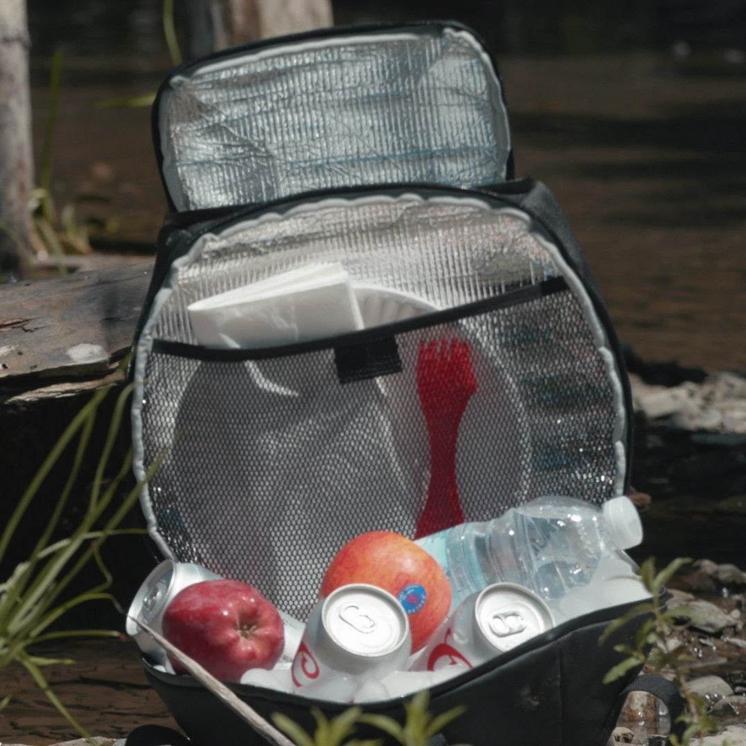- Sac supérieure de 4.5L avec fermeture éclair circulaire et deux pochettes secrètes à son revers.